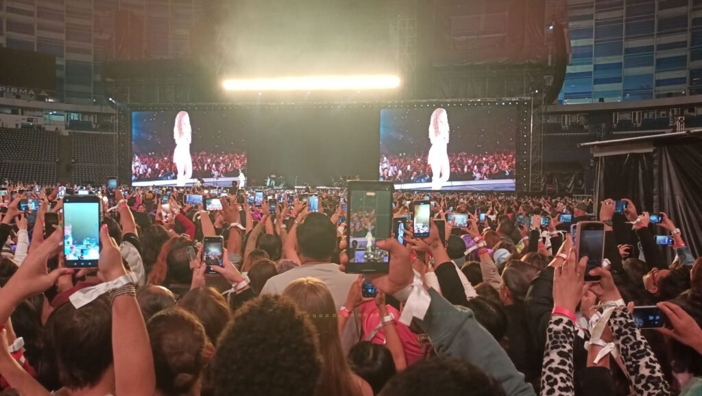 El concierto, parte de su gira “Las Mujeres Ya No Lloran”, incluyó éxitos recientes como “Te Felicito” y “Monotonía”, además de himnos como “La bicicleta”, “Chantaje” y “Ojos así”.