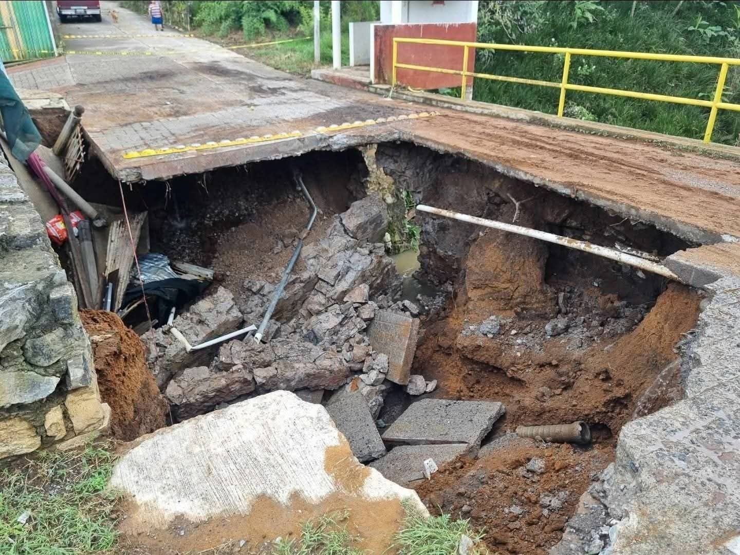 Mientras tanto, se recomienda a la población no intentar cruzar la zona colapsada, debido al riesgo de nuevos desprendimientos ocasionados por la corriente del río.